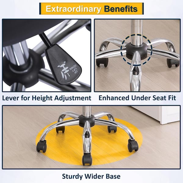 Questions and Answers for MAYKOOSH Black Adjustable Drafting Stool with Wheels and Backrest, Faux Leather Space-Saving Rolling Stool