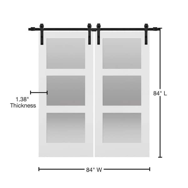 Questions and Answers for MMI DOOR 84 in. x 84 in. Shaker 3-Lite Frosted Glass Primed MDF Double Sliding Barn Door with Bent Strap Hardware Kits