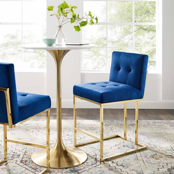 Privy 36.5 in. Gold Navy Stainless Steel Performance Velvet Counter Stool
