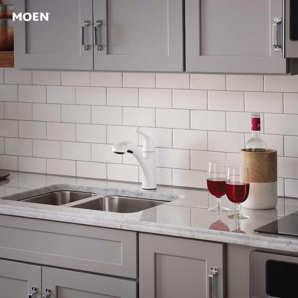 Questions and Answers for MOEN Brecklyn Single-Handle Pull-Out Sprayer Kitchen Faucet with Power Clean in White
