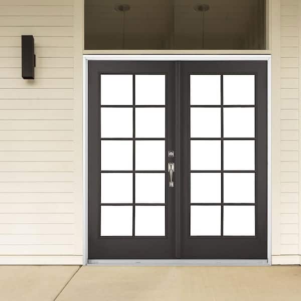 72 in. x 80 in. Black Left-Hand Inswing Fiberglass Full Lite LOE 10-Lite GBG Glass Hinged French Patio Door