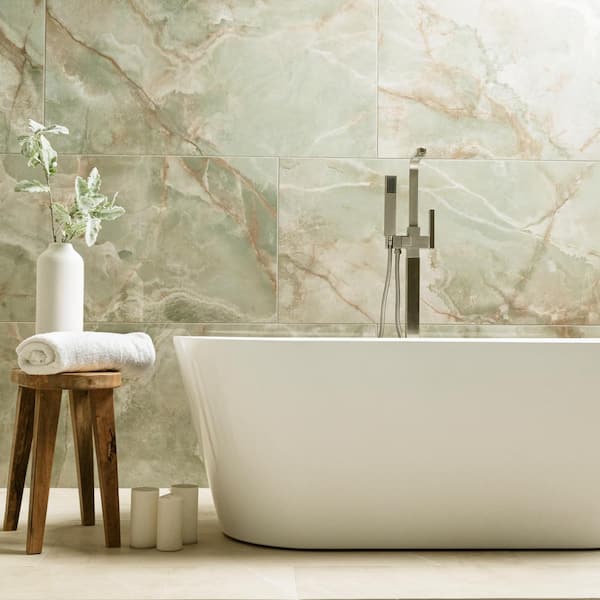Questions and Answers for MSI Aura Green Onyx Look Polished Porcelain Tile 24 in. x 48 in., Floor and Wall (16 sq. ft./Case)