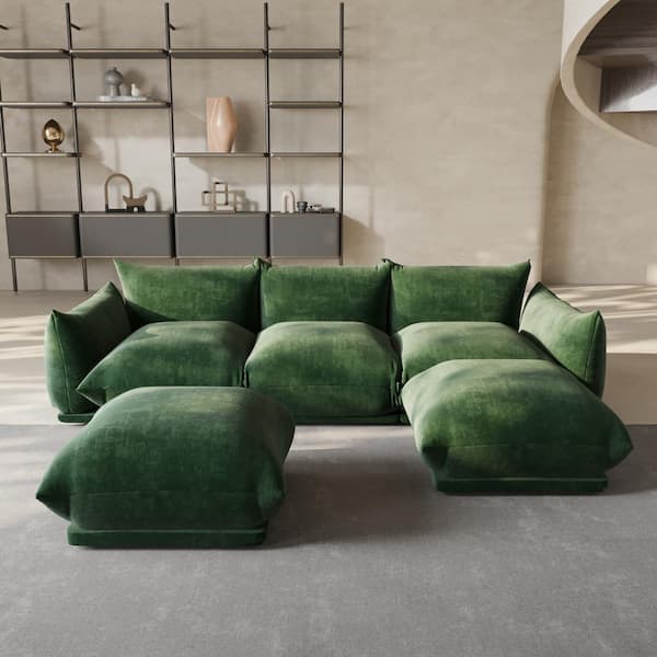 Be the first to ask a question for Magic Home Comfy 104 in. Flared Arm Breathable Chenille Modular Sofa Oversized U-shaped Lawson Floor Couch with 2 Ottomans in Green
