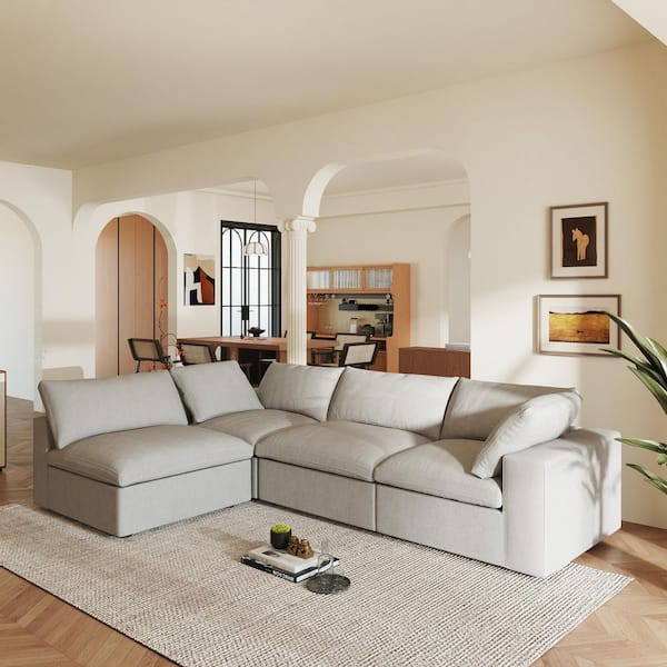 Questions and Answers for Magic Home Down Filled Large 157 in. Square Arm Linen 4-Seater Modular Tuxedo Sofa Convertible Cloud Couch Washable Covers in Gray