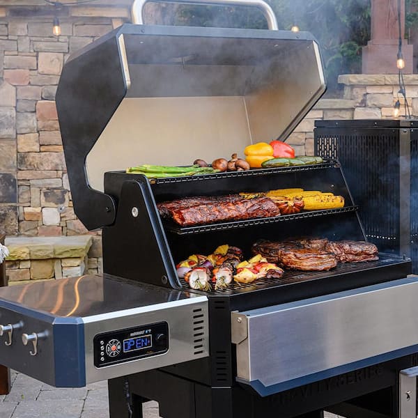 - Gravity Series 1050 Digital Charcoal Grill; up to 8 hours of fuel