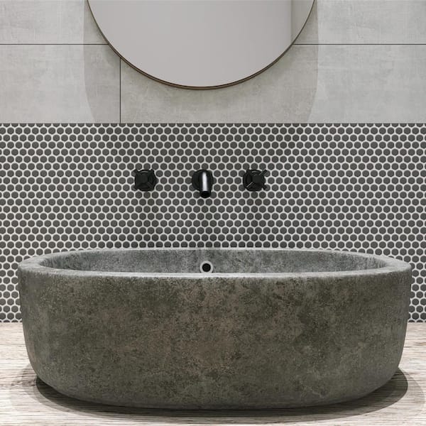 Be the first to ask a question for Merola Tile Gotham Penny Round Black 6 in. x 6 in. Porcelain Mosaic Take Home Tile Sample