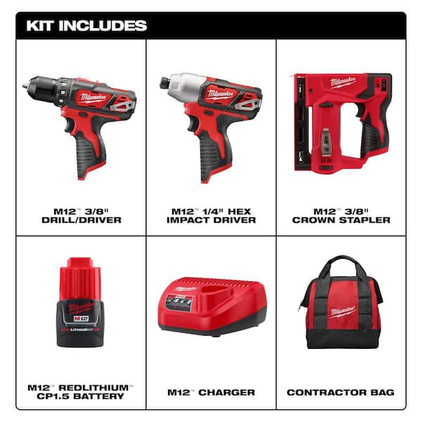 - Includes M12 3/8in. Drill/Driver and 1/4in. Impact Driver