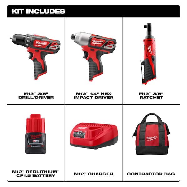 Questions and Answers for Milwaukee M12 12V Lithium-Ion Cordless Drill Driver, Impact Driver, and Ratchet Combo Kit (3-Tool)