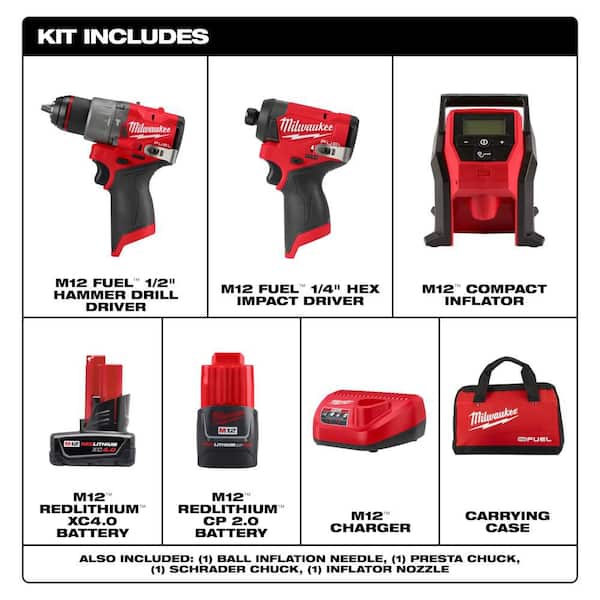 Questions and Answers for Milwaukee M12 FUEL 12-Volt Lithium-Ion Brushless Cordless Hammer Drill and Impact Driver Combo Kit (2-Tool) with Compact Inflator
