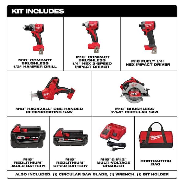 Questions and Answers for Milwaukee M18 18-Volt Lith-Ion Brushless Cordless Combo Kit (4-Tool) w/ 2-Batteries, 1-Charger & 1/4 in. Impact Driver
