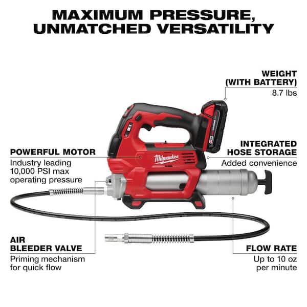 Questions and Answers for Milwaukee M18 18V Lithium-Ion Cordless 2-Speed Grease Gun 2 Battery Kit with M18 2.0 Ah Compact Battery