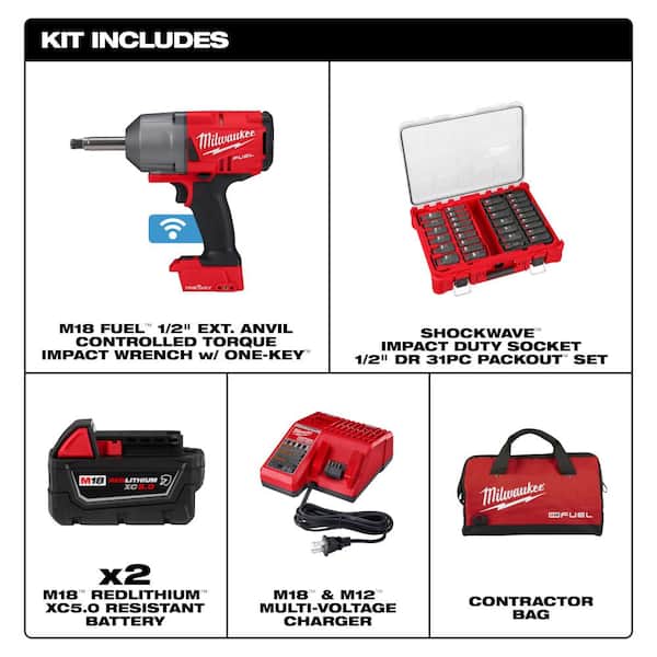Questions and Answers for Milwaukee M18 FUEL ONE-KEY 18V Li-Ion Brushless Cordless 1/2 in. Ext Anvil Impact Wrench w/ Batteries & Impact Socket Set
