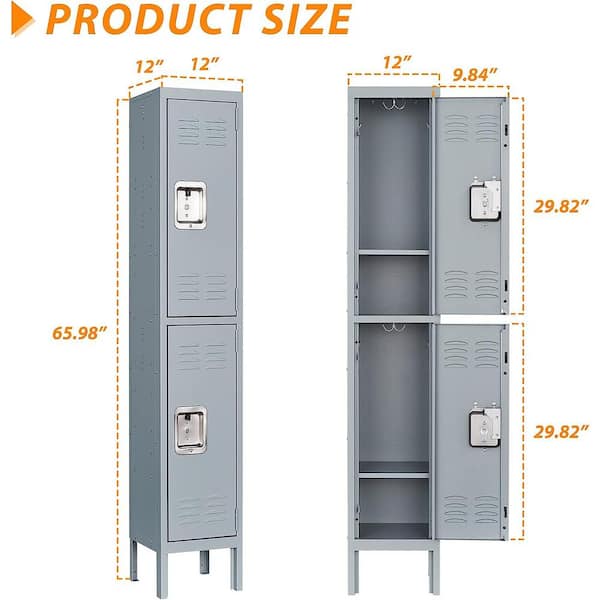 Be the first to ask a question for Mlezan Metal Locker 2 Tier 12 in. D x 12 in. W x 66 in. H in Gray Lockable 2 Doors Storage Locker for School Changing Room Gym