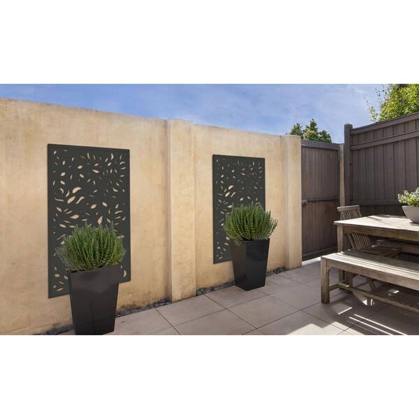 5 ft. x 3 ft. Framed Charcoal Gray Decorative Composite Fence Panel featured in The Leaf Design