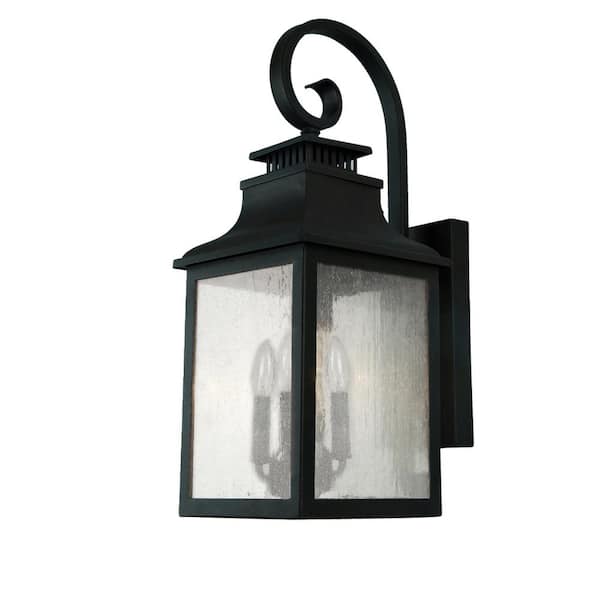 Questions and Answers for Morgan Rich Black 3-Light Outdoor Wall Lantern Sconce with Clear Seedy Glass Shade