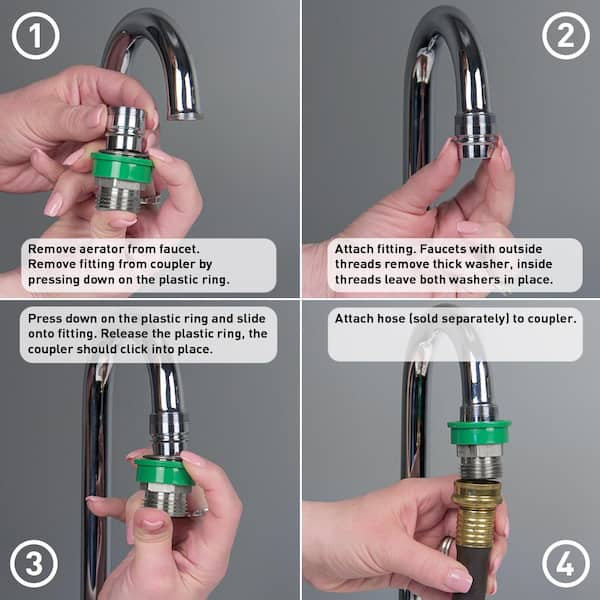 - Fitting fits faucets with 15/16 in.-27 and 55/64 in.-27 threads