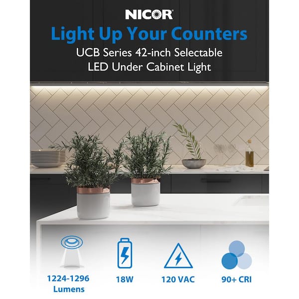 Be the first to ask a question for NICOR UCB Series 42 in. Hardwired White Selectable Integrated LED Under Cabinet Light with On/Off Switch