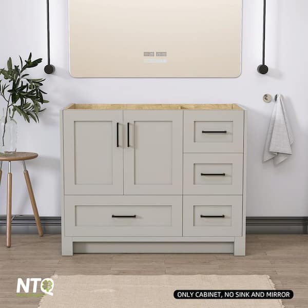 Questions and Answers for NTQ 42 in. W x 21.5 in. D x 33.5 in. H Bath Vanity Cabinet without Top Solid Wood Bathroom Vanity Base in Light Gray