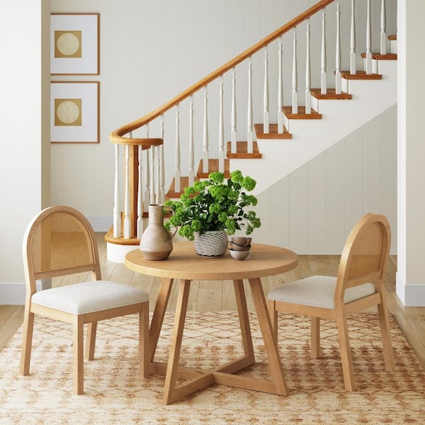 Be the first to ask a question for Nathan James Bailey 19 in. Boucle Upholstered Side Dining Chair w/ Rattan Back and Solid Wood Legs, Cream Boucle/Warm Pine, Set of 2