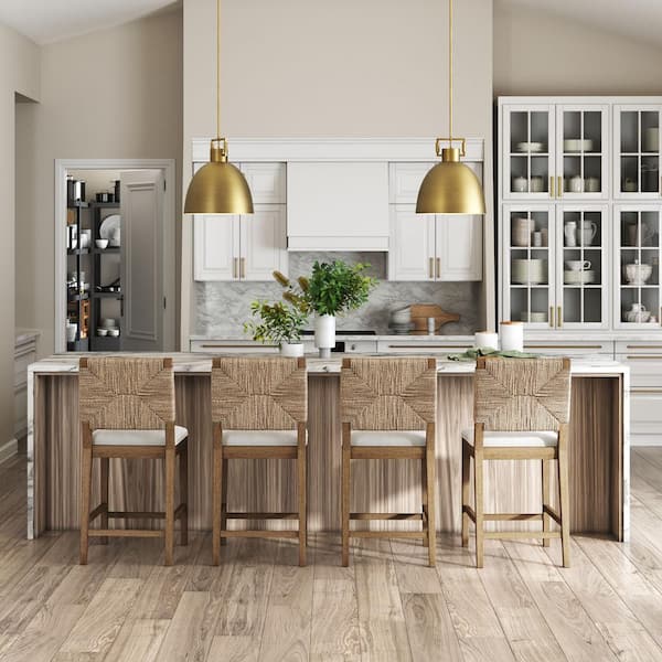 Questions and Answers for Nathan James Beacon 24 in. Bohemian Boucle Upholstered Wood Counter Height Bar Stool w/ Woven Back, Cream Boucle/Light Brown,Set of 4