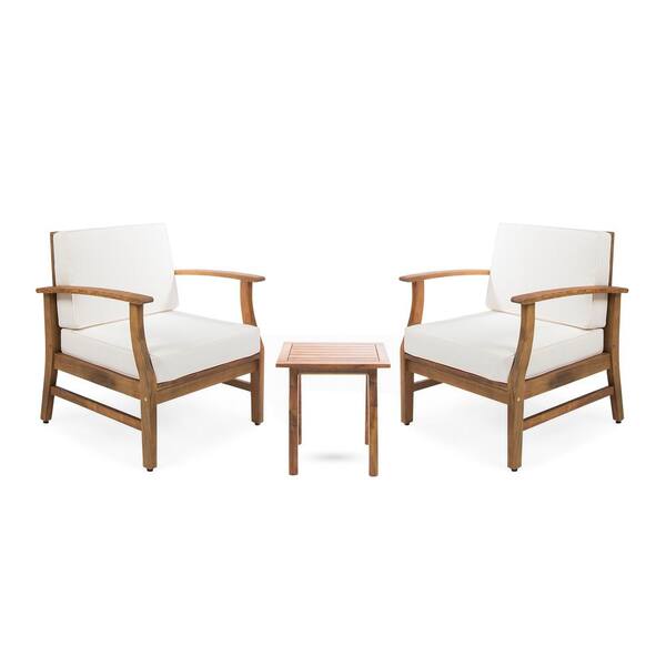 Questions and Answers for Noble House Perla Teak Brown 3-Piece Wood Outdoor Patio Conversation Seating Set with Cream Cushions