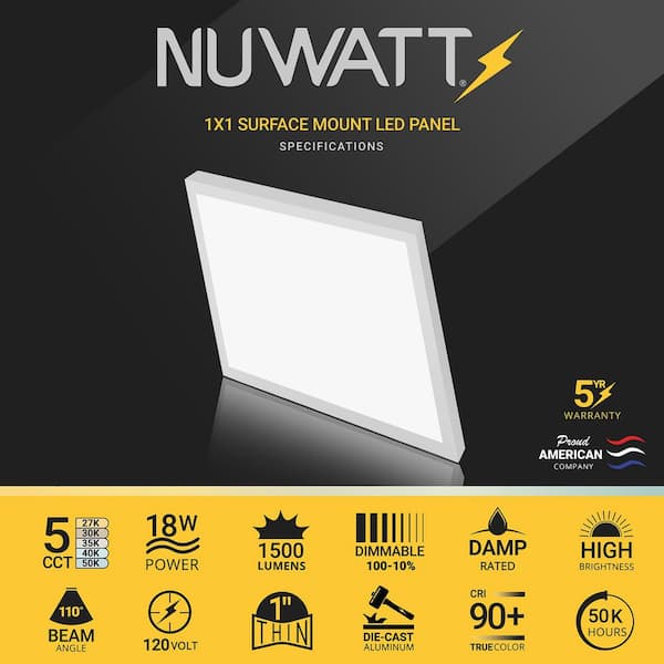 Be the first to ask a question for NuWatt 1 ft. x 1 ft. White Surface Mount Panel Integrated LED 18-Watt Dimmable 5CCT Selectable 2700K-5000K