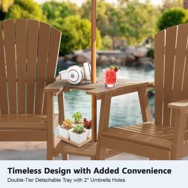 Wood HDPE Tall Adirondack Chair with Removable Double Connecting Trays for Deck, Balcony, Patio (2-Pack)