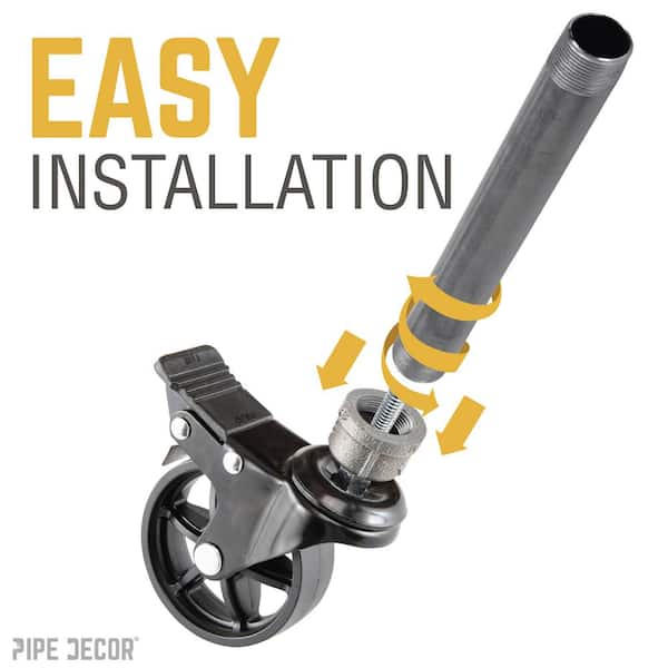 Be the first to ask a question for PIPE DECOR 1 in. Black Malleable Iron Cap Fitting with 3 in. Caster Wheel for Pipe Furniture (4-Pack)