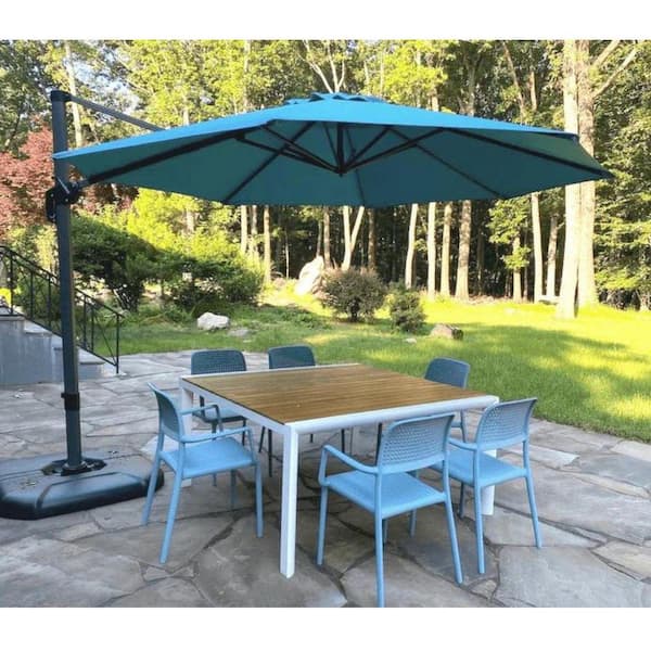 Questions and Answers for PURPLE LEAF 10 ft. Octagon Aluminum Outdoor Patio Cantilever Umbrella Offset 360° Rotation Umbrella with Base, Turquoise Blue