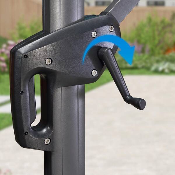 Questions and Answers for PURPLE LEAF 10 ft. x 13 ft. Patio Cantilever Aluminum Offset Umbrella with 360° Rotation for Garden Deck Pool, Turquoise Blue