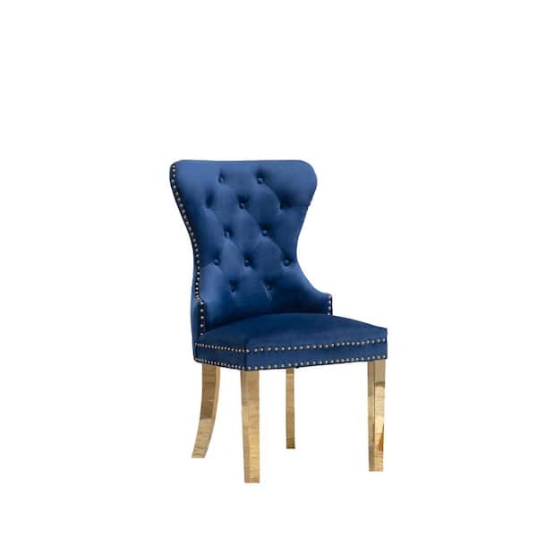 Be the first to ask a question for Best Quality Furniture Pam Navy Blue Velvet Gold Stainless Steel Dining Chairs (Set of 2)