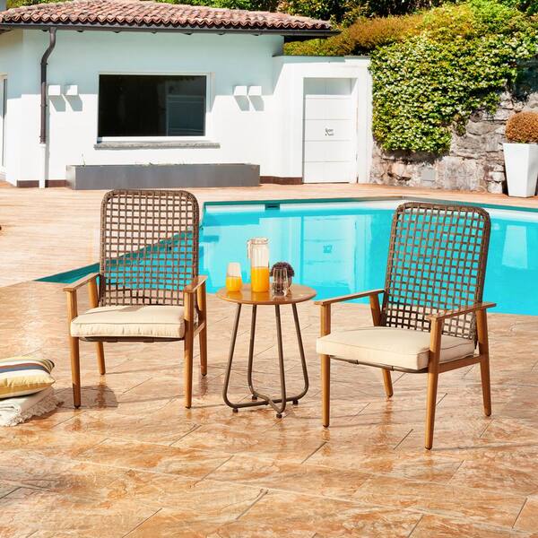 3-Piece Wicker Patio Conversation Set with Beige Cushions