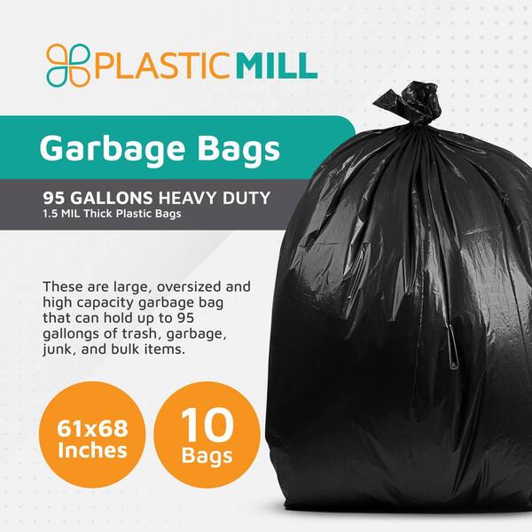 Questions and Answers for PlasticMill 61 in. W x 68 in. H. 95 Gal. 1.5 mil Black Trash Bags (50-Count)
