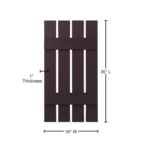 Questions and Answers for Ply Gem 16 in. x 35 in. Polypropylene 4-Board Open Board and Batten Shutters Pair in Winestone