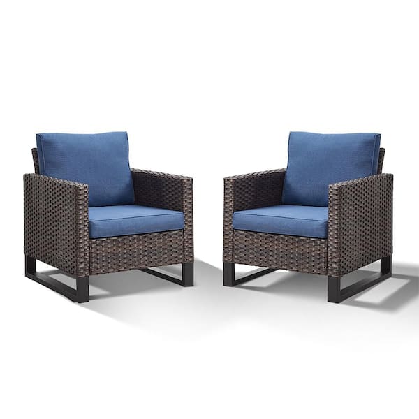 Questions and Answers for Pocassy Brown Wicker Outdoor Patio Lounge Chair with CushionGuard Blue Cushions (2-Pack)