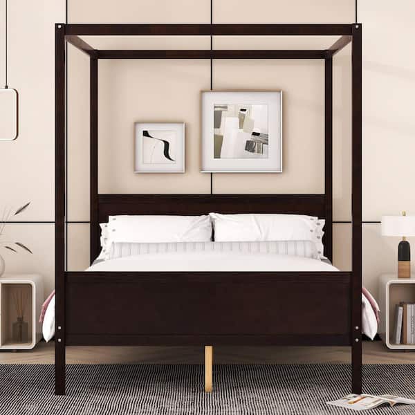 Be the first to ask a question for Polibi Brown Frame Queen Size Canopy Bed with Headboard and Footboard, Slat Support Leg