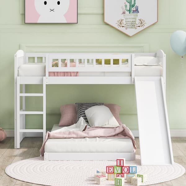Questions and Answers for Polibi Modern Exquisite White Twin Over Twin Bunk Bed with Slide and Ladder (77.4 in. L x 88.9 in. W x 49.2 in. H)