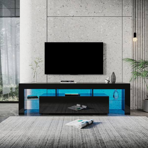 Questions and Answers for Polibi Modern TV Stand Fits TV's up to 80 in. with Gloss Black TV Stand for 80 in. TV, 20 Colors LED TV Stand