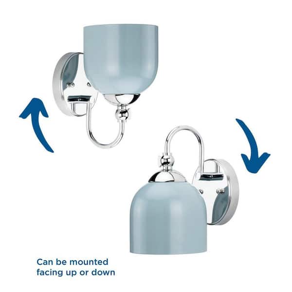 Questions and Answers for Progress Lighting Dalton 5.5 in. 1-Light Polished Chrome Coastal Blue Vanity Light for Bath and Vanity