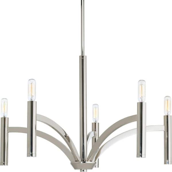 Be the first to ask a question for Progress Lighting Draper Collection 5-Light Polished Nickel Luxe Chandelier Light