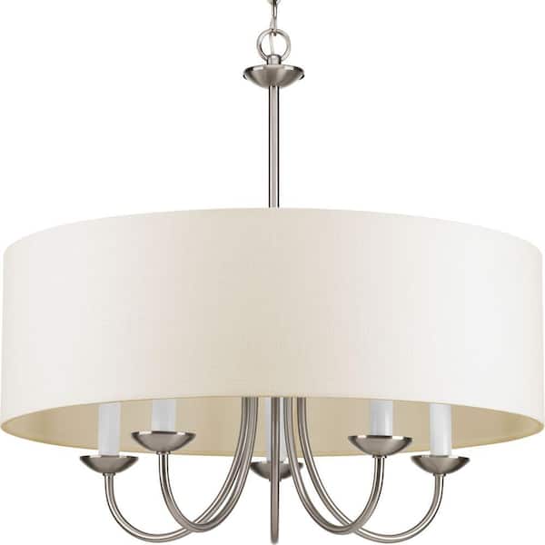 Questions and Answers for Progress Lighting Drum Shade Collection 5-Light Brushed Nickel White Textured Linen Shade Farmhouse Chandelier Light