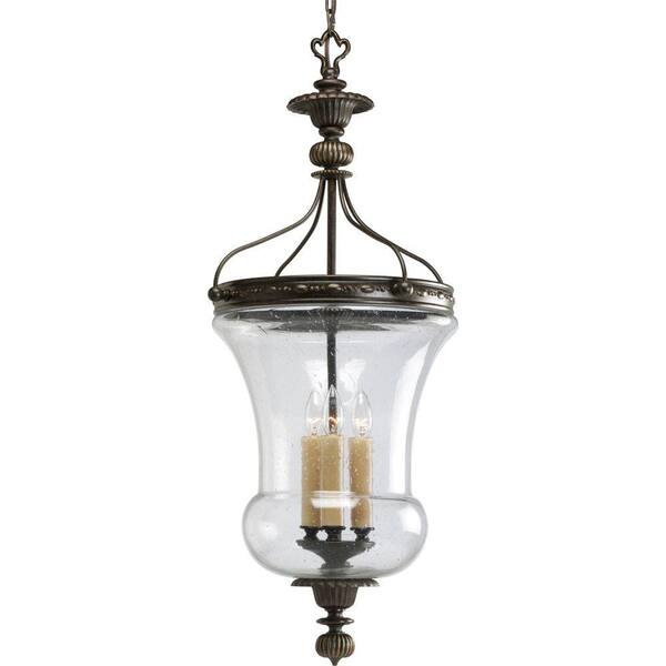 Questions and Answers for Progress Lighting Fiorentino Collection 3-Light Forged Bronze Foyer Pendant with Clear Seeded Glass