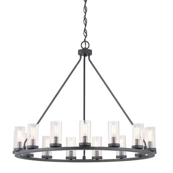 Be the first to ask a question for Progress Lighting Hartwell 32-5/8 in. 15-Light Graphite Farmhouse Wagon Wheel Chandelier with Nickel Accents and Clear Seeded Glass
