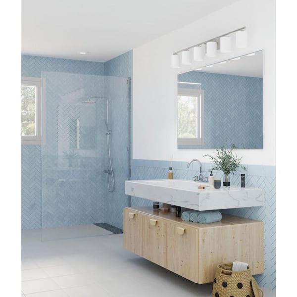 Questions and Answers for Progress Lighting Replay Collection 48 in. 6-Light Polished Nickel Vanity Light Etched White Glass Modern Bath Light