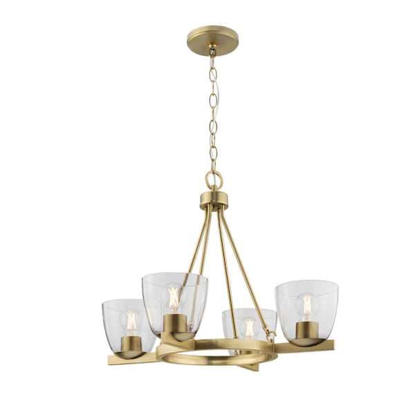 Be the first to ask a question for Progress Lighting Tamassee Collection 4-Light Brushed Gold Updated Traditional Chandelier with Clear Glass Shades for Dining Room