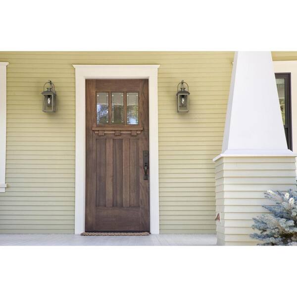 Questions and Answers for Progress Lighting Woodcliff 1-Light 15 in. Weathered Brass Outdoor Wall Lantern with Clear Glass