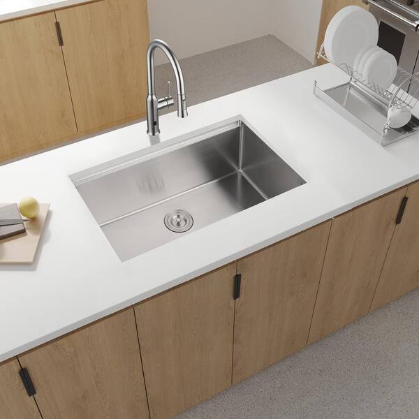 28 in. L x 19 in. W Undermount Single Bowl 16-Gauge Stainless Steel Kitchen Sink in Brushed Nickel
