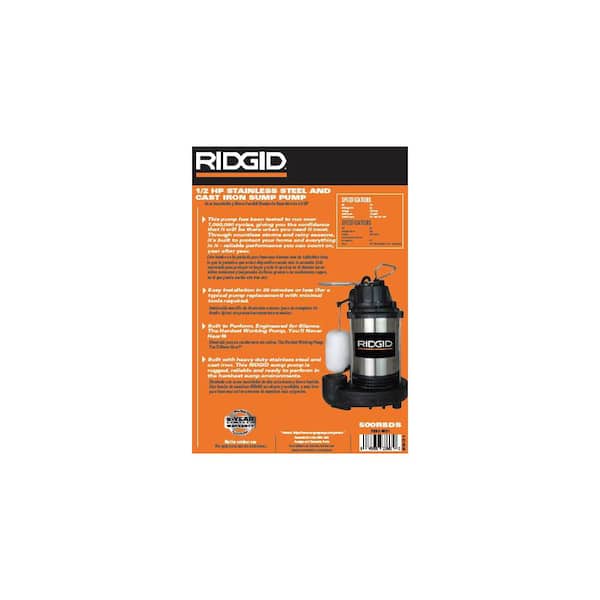 Questions and Answers for RIDGID 1/2 HP Stainless Steel Dual Suction Submersible Sump Pump