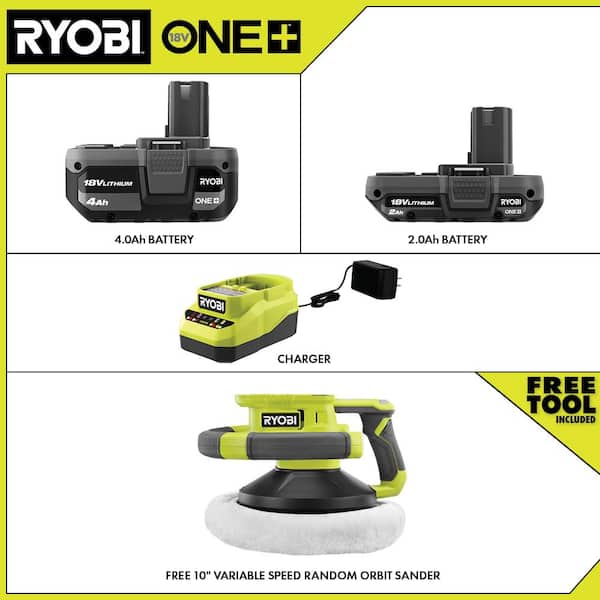 Questions and Answers for RYOBI ONE+ 18V Cordless 10 in. Variable Speed Random Orbit Buffer with 2.0 Ah Battery, 4.0 Ah Battery, and Charger