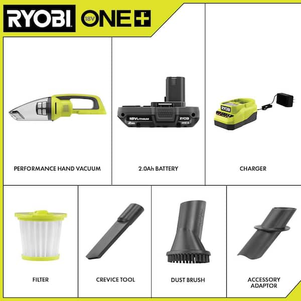 Be the first to ask a question for RYOBI ONE+ 18V Cordless Performance Hand Vacuum Kit with 2.0 Ah Battery and Charger